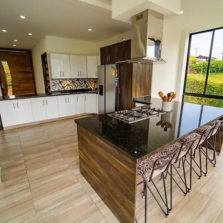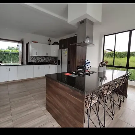 House, Farm Or Villa In Pereira, Colombia offers a fully equipped kitchen featuring a microwave oven, coffee and tea making machines, and a fridge. - ❓